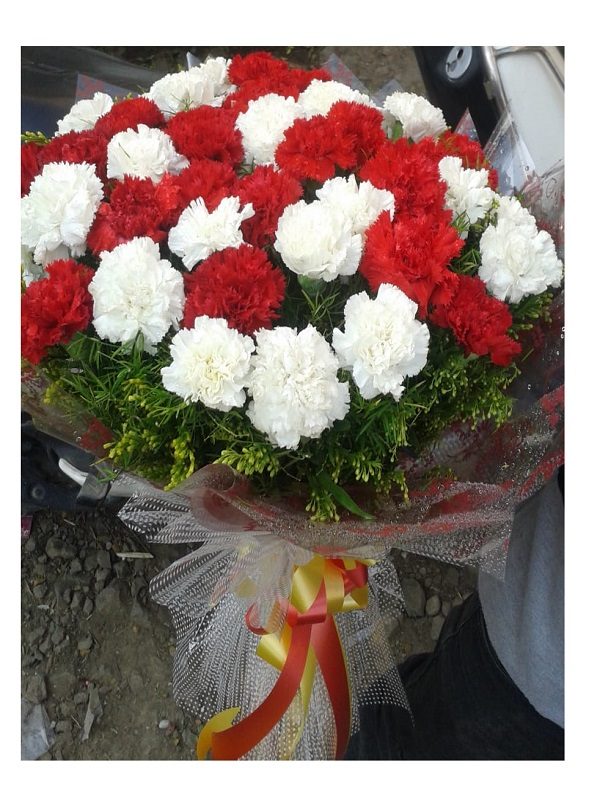 • Bunch of 15 red and 15 white carnations